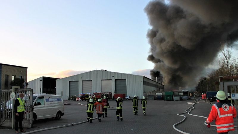 Großbrand bei Müllverwertungsunternehmen fordert 150 Einsatzkräfte in Südbrookmerland