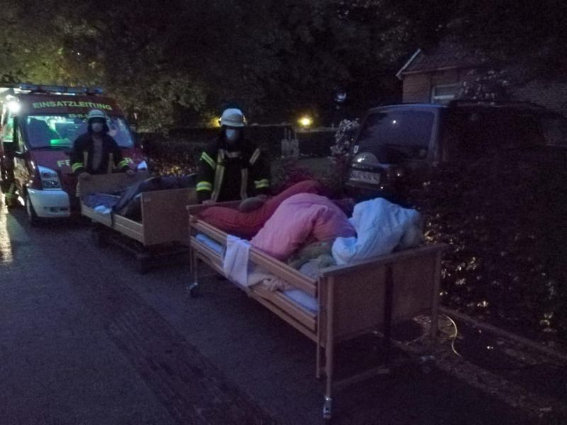 Beim Eintreffen der ersten Feuerwehrkräfte, konnte die Lage entschärft werden, da alle Bewohner der Einrichtung bereits durch die vor Ort befindlichen Mitarbeiter aus dem Gebäude evakuiert werden konnten. Verletzte gab es keine, lediglich leichte Aufregung und unterschwellige Panik war bei den Hilfebedürftigen festzustellen. Mitarbeiter der Einrichtung und herbeigeeilte Nachbarn beruhigten die 20 Bewohner bereits. Einsatzkräfte der Feuerwehr unterstützten bei der Betreuung, bis der Rettungsdienst, das DRK und die JUH die Betreuung übernahmen.