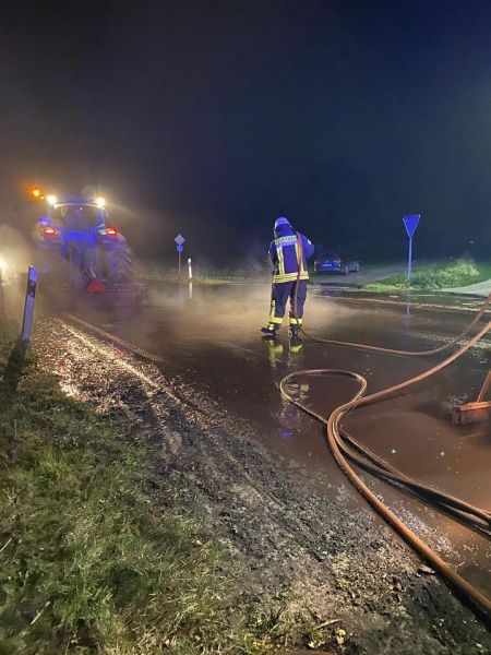 Am Mittwochabend um 19:00 Uhr wurde die Feuerwehr Wiegboldsbur durch den Gemeindebrandmeister an die B72 alarmiert. Vor Ort verlor ein Traktor Erde nach der Ernte, welche auf der Straße festgefahren war und eine Gefahr für den Straßenverkehr darstellte. Mit dem Tanklöschfahrzeug 16/24 wurde die Straßen mit Wasserschläuchen gereinigt. Im Laufe des Einsatzes wurde die Feuerwehr Uthwerdum mit dem Hilfeleistungslöschgruppenfahrzeug zur Unterstützung alarmiert, welche mit sechs Personen vor Ort war. Mit insgesamt 18.500 Liter Wasser wurde die Straße gesäubert.