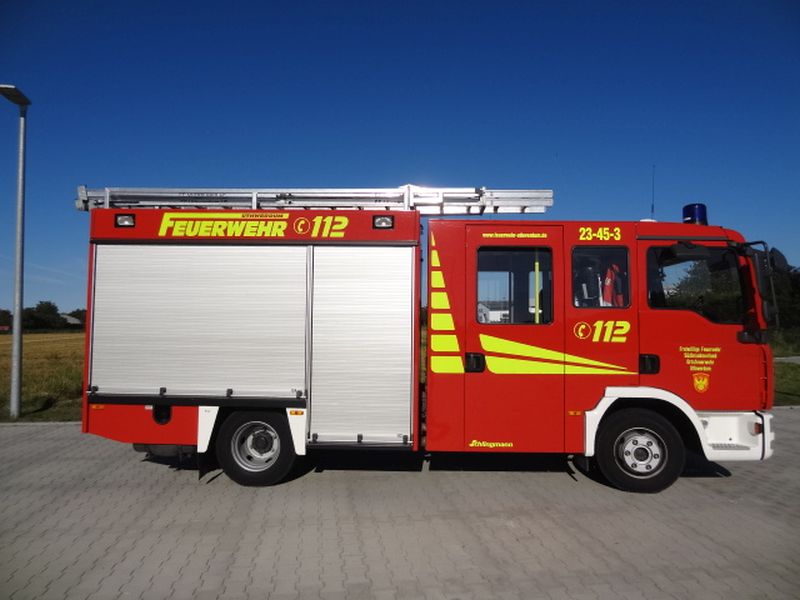 Hier sehen sie unser Löschgruppenfahrzeug 10. Anders als bei vielen Wehren üblich haben wir bewusst auf einen Löschwassertank bei diesem Fahrzeug verzichtet. Grund dafür ist zum einen das wir bis zum 25.04.2013 über ein Tanklöschfahrzeug verfügten welches durch ein Hilfeleistungslöschgruppenfahrzeug ersetzt werden konnte. Durch diese beiden wasserführenden Fahrzeuge und das dichte Hydrantennetz ist somit in der Anfangsphase eines Brandeinsatzes die Wasserversorgung sichergestellt. Hauptgrund war allerdings um die zulässige Gesamtmasse von 7500 kg nicht zu überschreiten. Dadurch besitzen wir den Vorteil dass dieses Fahrzeug auch mit der alten Führerscheinklasse 3 und dem neuen Feuerwehrführerschein gefahren werden darf. Besonderes Merkmal dieses Fahrzeuges ist aber auch, dass es statt dem eingebauten Löschwassertank über einen großen Vorrat an B-Leitungen in Buchten gelegt (zur schnellen Entnahme während langsamer Fahrt) verfügt. Somit ist eine schnelle Wasserversorgung über lange Wegstrecken gewährleistet.